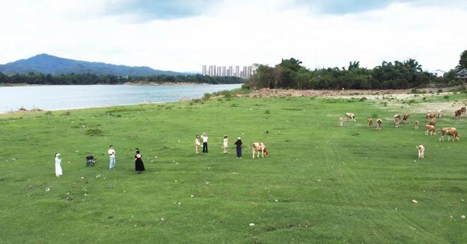 踏入大洲村,干净整洁的水泥路蜿蜒向前,村民的房前屋后花草摇曳、绿意葱茏,处处洋溢着生机。河滩上,宽阔的草地像是一块天然的绿地毯,一群群奶牛悠然自得地吃草,构成了一幅充满野趣的田园风光图,因此大洲也被融安人亲切地称为“自己的阿勒泰”。每逢周末,游客们或铺上野餐垫乘凉休憩,或支起帐篷露营,尽情享受悠闲时光。